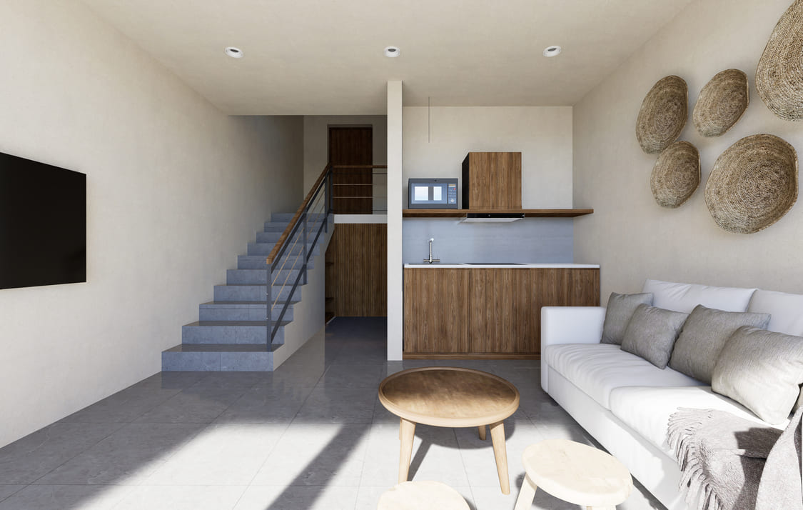 The six villas are located in Arkasa, Karpathos. Each two-floor villa features an inviting upstairs bedroom, directly facing the Aegean Sea. The downstairs area includes an open living area, kitchen and bathroom to ensure maximum comfort. #incovillas ideally host a maximum of two adults and two children. The natural surroundings of the property guarantee a restful and peaceful stay at Incognito. The buildings use renewable solar water heating systems to provide customers with vast hot water.